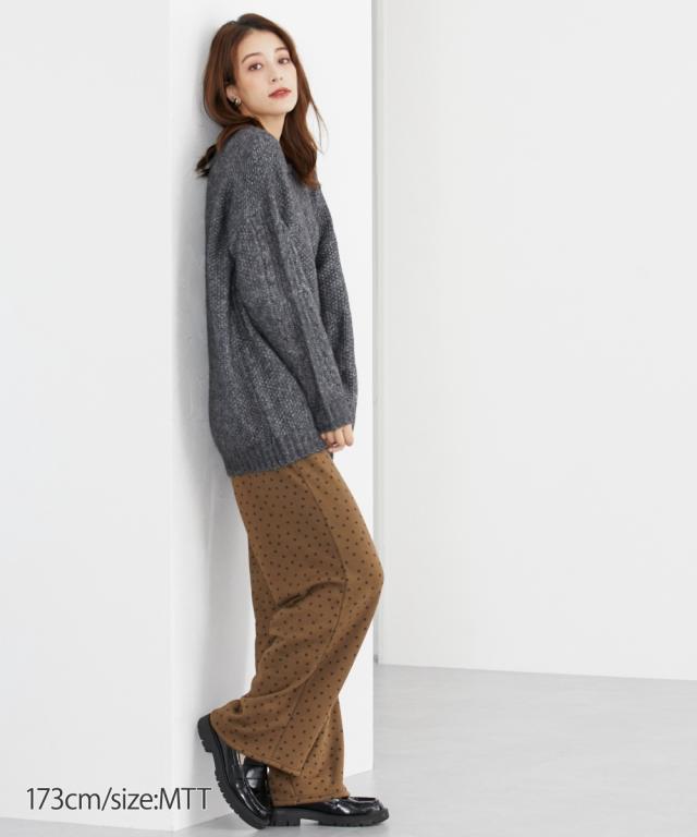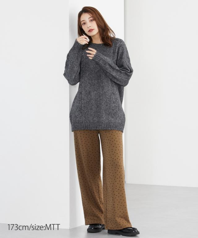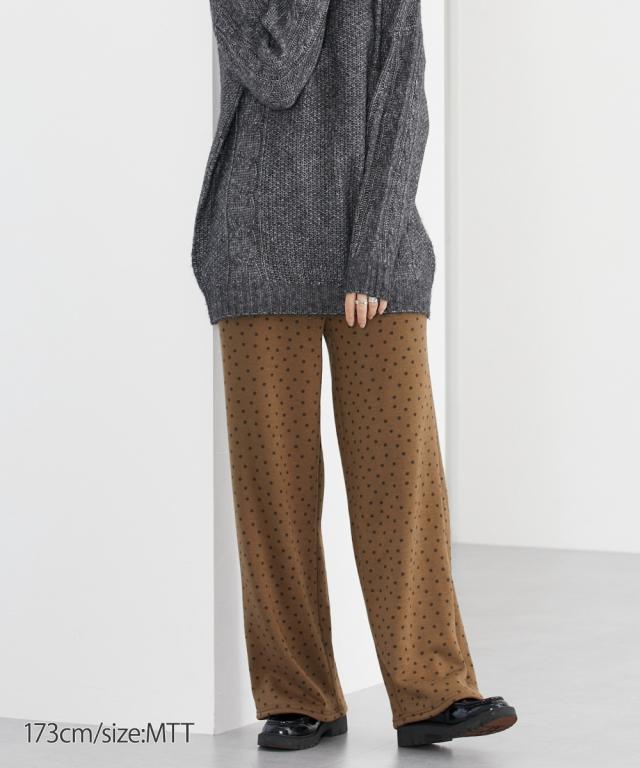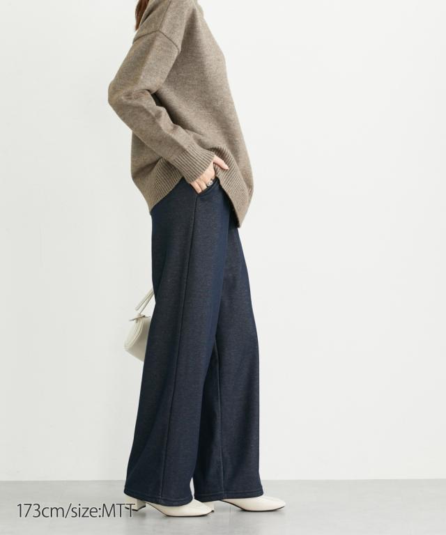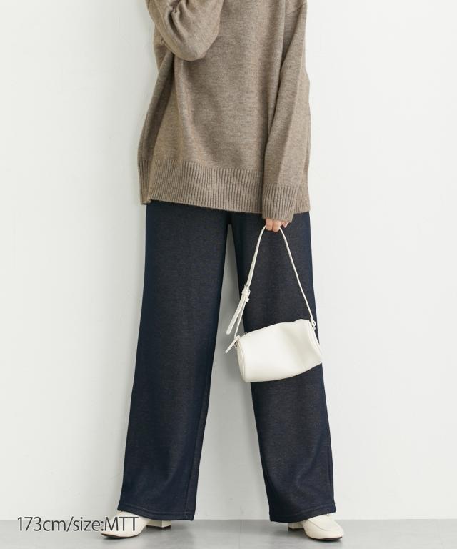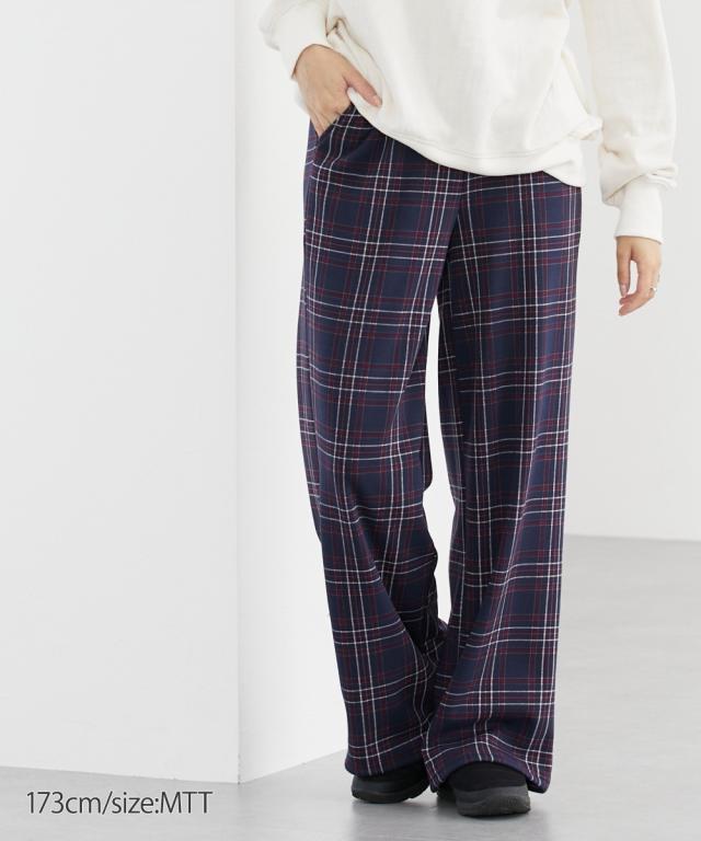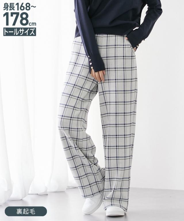 【高身長な方向け】冬に嬉しいあったか裏起毛タイプのワイドパンツ。 ■デザイン ・ほどよい太さのワイドシルエットはカットソー素材でリラックス感のある履き心地。 ・ウエスト総ゴム入りでストレスフリー ■素材 ・カットソー素材を使用しているので履き心地楽ちん 裏面は肌ざわりがよく暖かい裏起毛加工を施しています。 ・デニム調、チェック柄、ドット柄と表情があるのもうれしいポイント ■おすすめのスタイリング ・ストレッチのあるパンツはどんな動きもらくらく。ワンマイルやデイリー、様々なシーンでご着用いただけます。 ※高身長な方向けに通常サイズより丈長めに設計しています・