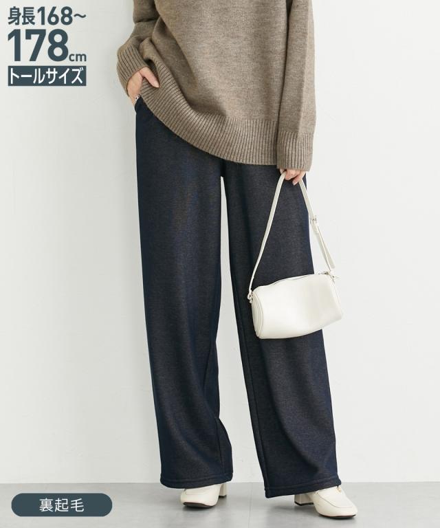 ワイドパンツ トールサイズ レディース 高身長 裏起毛 カットソー ワイド パンツ 丈長め 冬 ゆったり 体型カバー 美脚 ボトムス ズボン M/L ニッセン nissen
