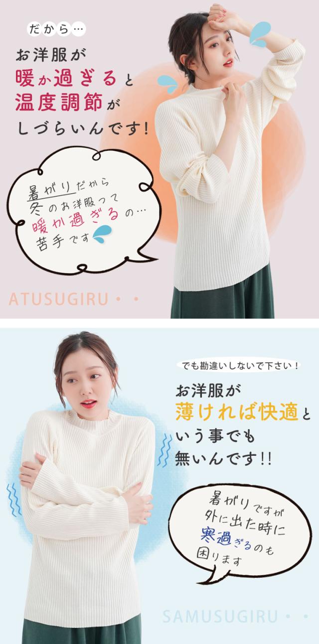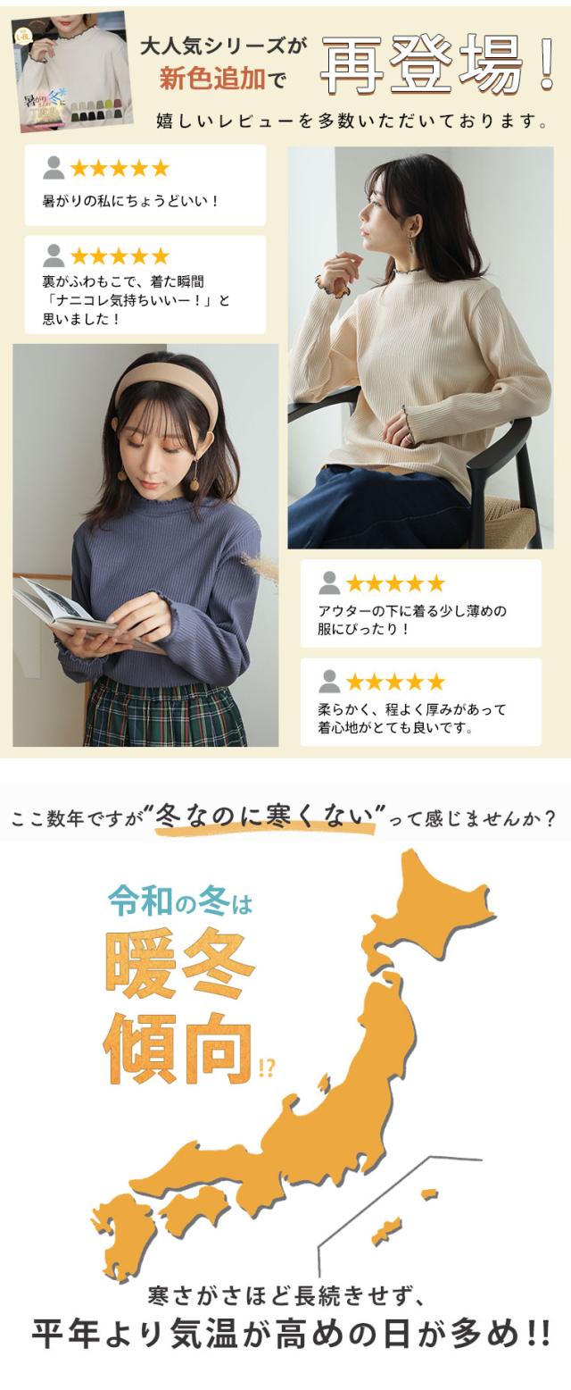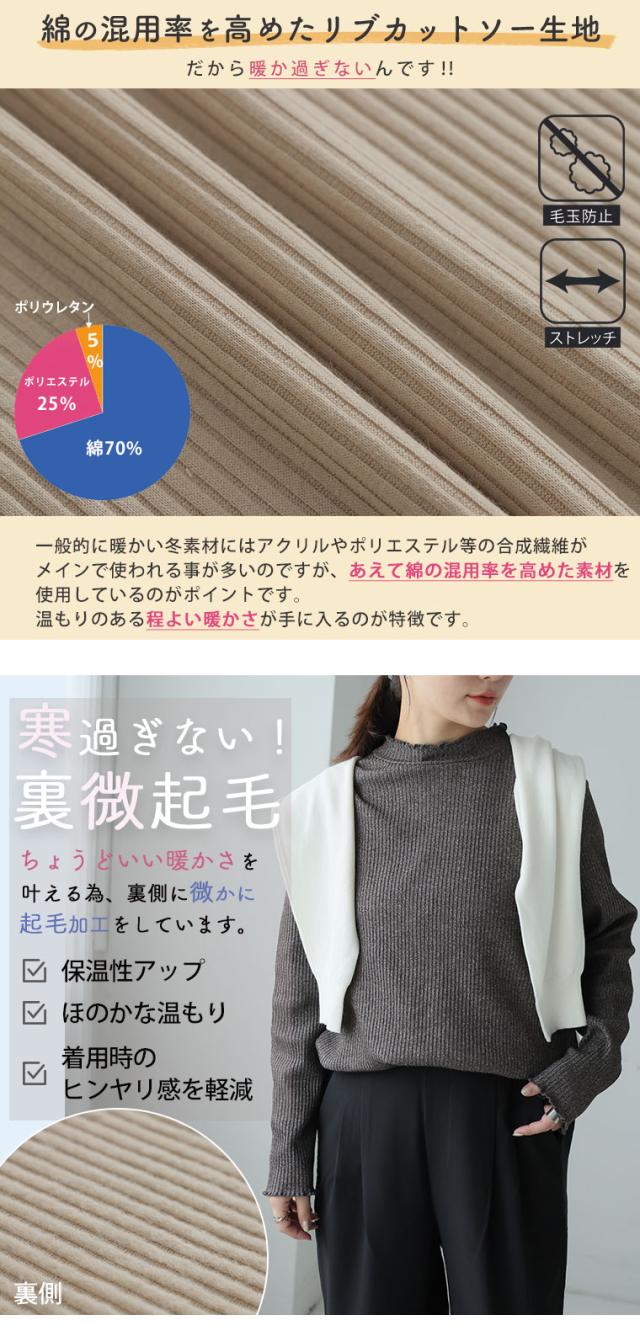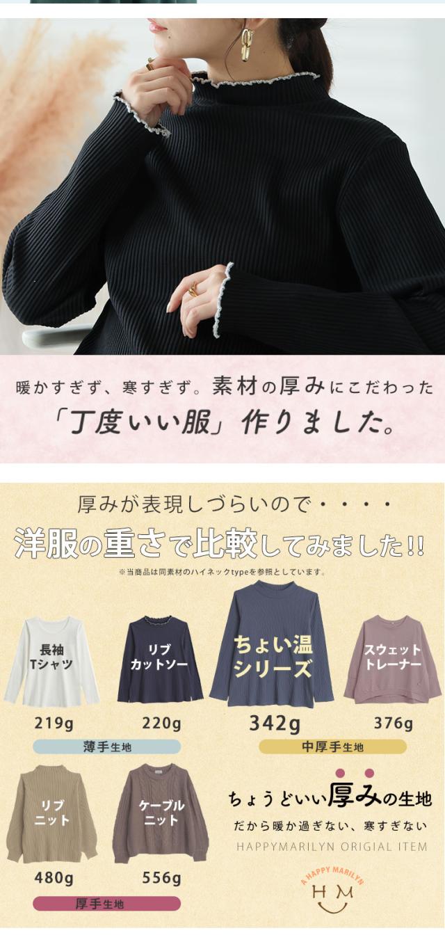 ほどよい暖かさが丁度いい【ちょい温シリーズ】 メロウ ハイネックリブ トップス
