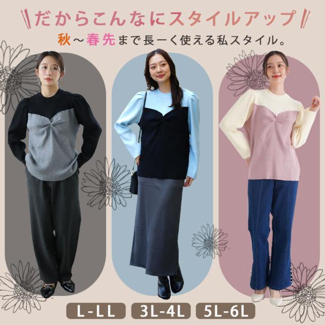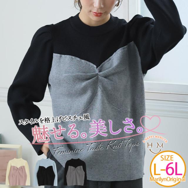 新作 大きいサイズ レディース ニット | ラク可愛 無敵トップスシリーズ ビスチェ風 プチハイ ニットトップス [432892] LL 3L 4L 5L 6L