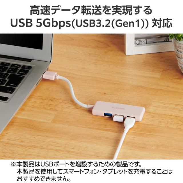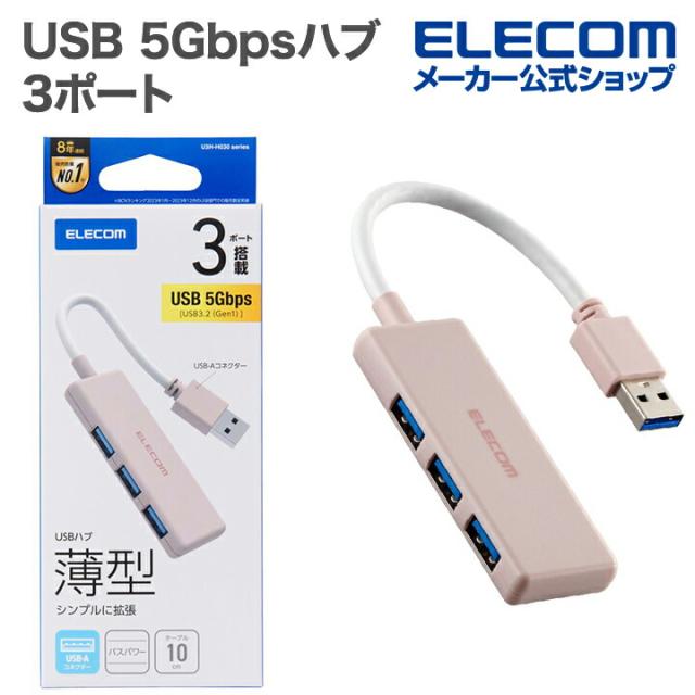 【在庫処分・お買い得!】 エレコム USBハブ USB 5Gbpsハブ 3ポート バスパワー ピンク ┃U3H-H030PN
