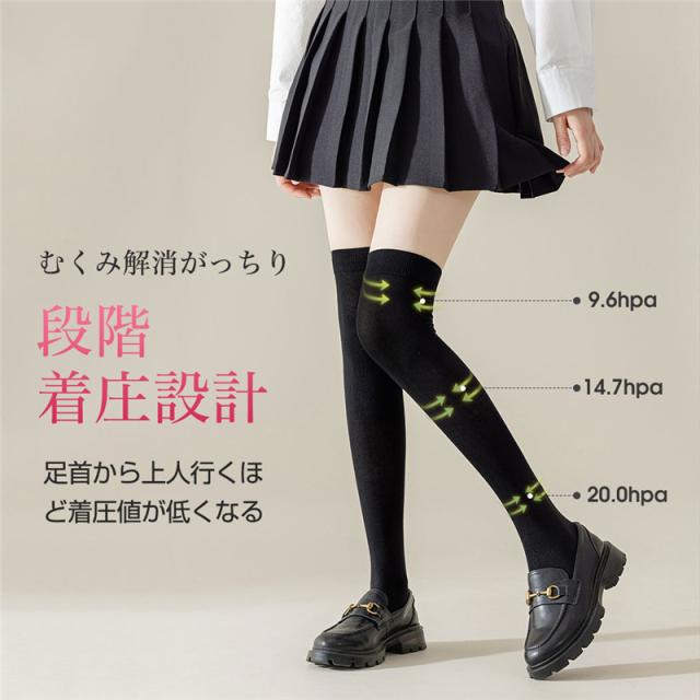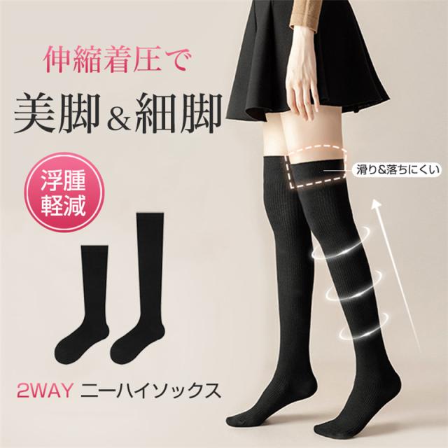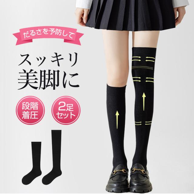 着圧ソックス 強圧 サポート 靴下 足底アーチサポート 滑り止め 2足セット ハイソックス 段階着圧 ニーハイソックス 細脚 美脚