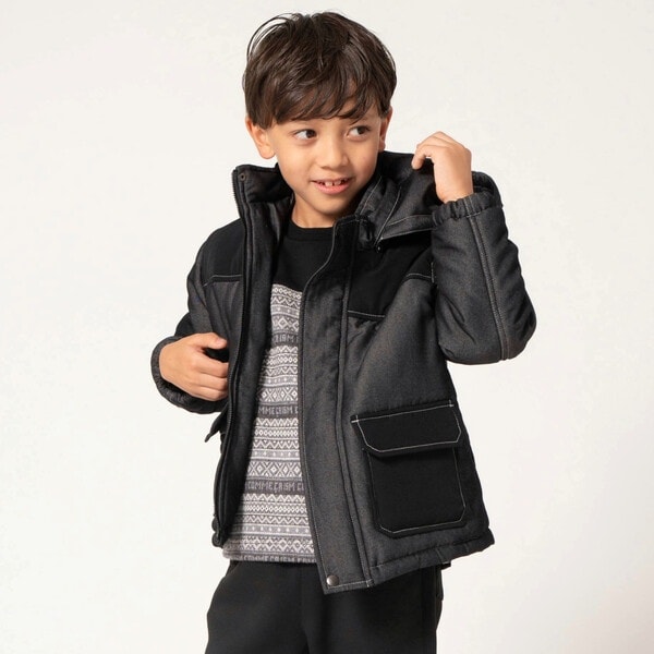 通学・通園など、普段使いしやすいフード付き中綿ブルゾンです。