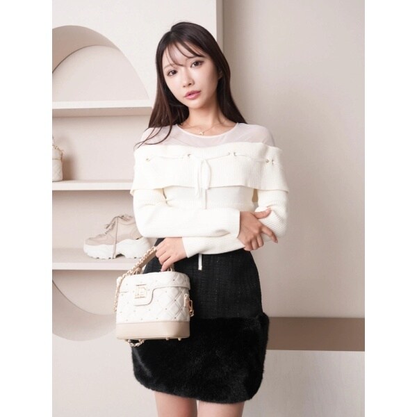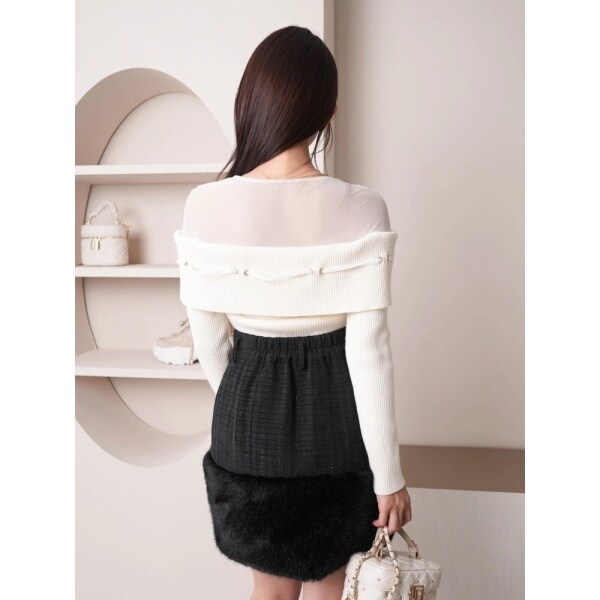 ・ファーのボリュームがあるのでシンプルなトップス合わせでも華やかになる。