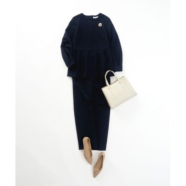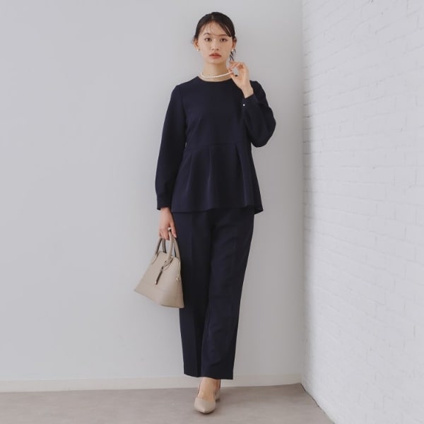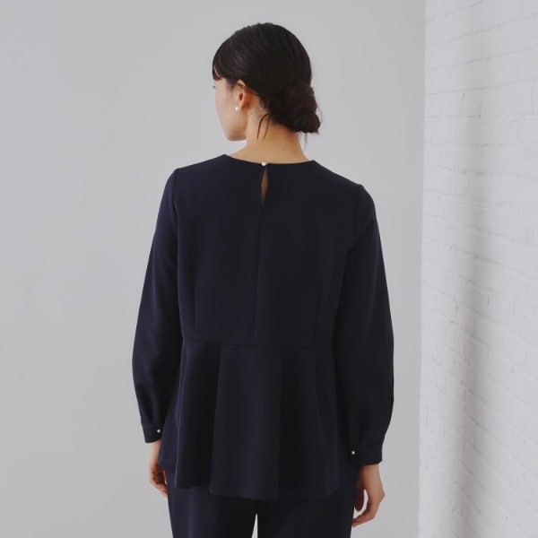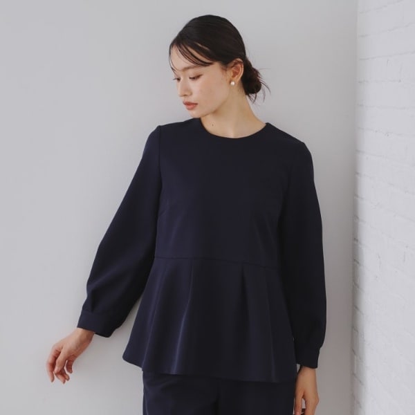 《通勤・セレモニーセットアップ対応》ペプラムブラウスダブルクロス【洗濯機洗い可】