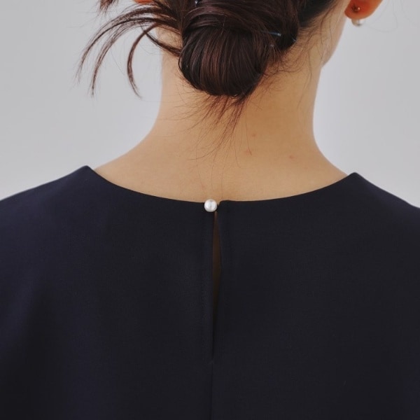 ・首の後ろと袖口にパール調ボタンをあしらい、華やかさをプラス。