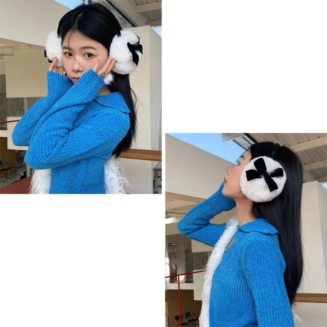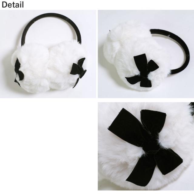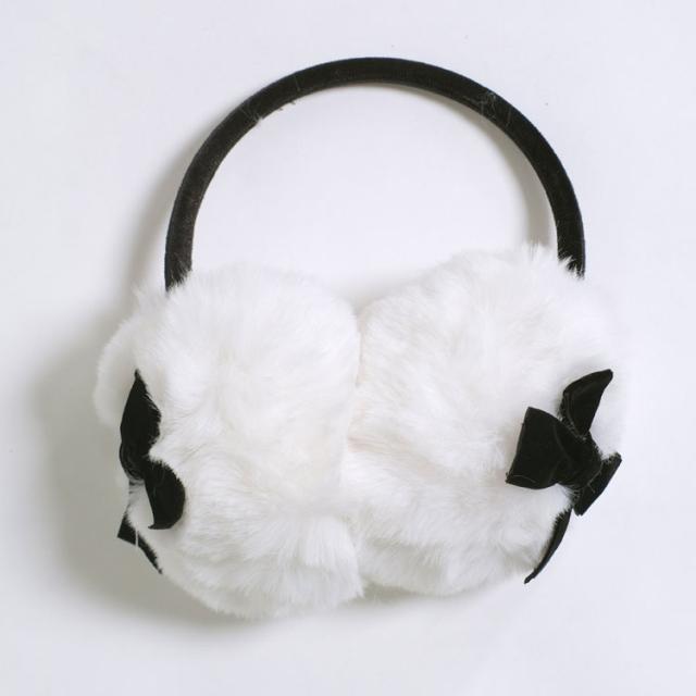 ベルベットリボンがかわいいもこもこ耳あて。
