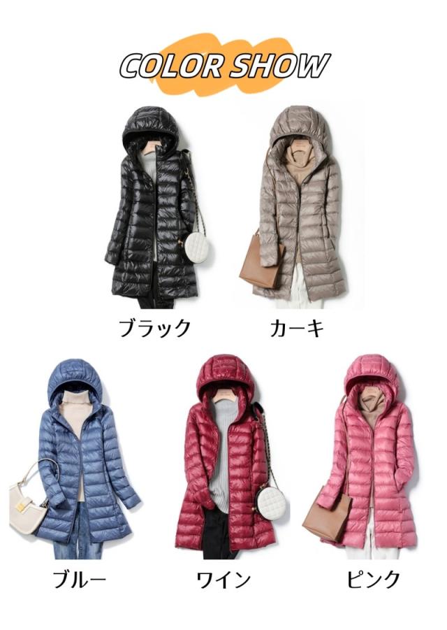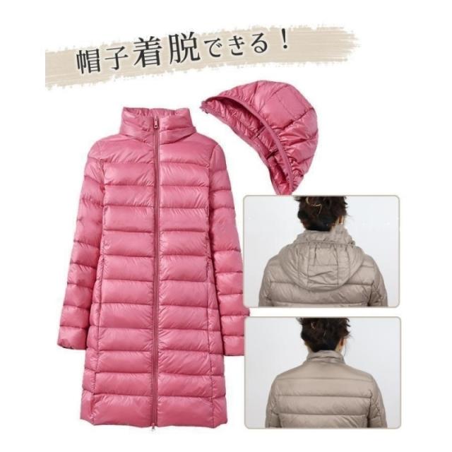 ダウンジャケット レディース ダウンコート 軽量 薄手 コート ロング ジャケット アウター ダウン ライトダウン フード付き 冬新作