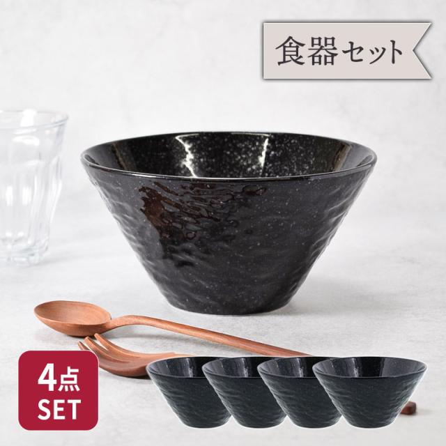 食器セット 台形どんぶり 4個セット 16cm スレート調 黒御影 割引セット 送料無料 丼ぶり 丼 和食器 おしゃれ 麺鉢 ボウル 鉢 大鉢 食器 ラーメン鉢 うどん丼ぶり そば丼ぶり 丼物 カフェ丼 セット食器 ファミリー食器 家族食器 引っ越し