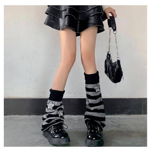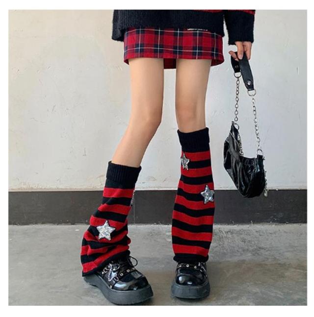 JK 地雷系 チェック柄 星柄 Y2K 原宿系 サブカル系 病み可愛い ルーズソックス 靴下 ゴスロリ 防寒 ギャル パンク レディース サブカル系 レッグカバー 冷え対策 学生 女子 JK 高校生 中学生