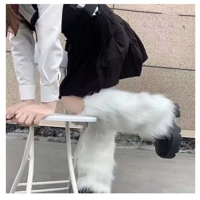 ソックス フェイクファー レッグウォーマー 渋谷 レッグカバー 足首ウォーマー 暖かい おしゃれ モコモコ 靴下 ふわふわ レディース ファー ルーズソックス 冷え対策 ロング 女性 女の子 学生 防寒 原宿 ギャル 地雷系 ゴシック系 レッグウォーマー 秋