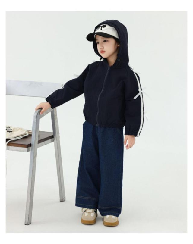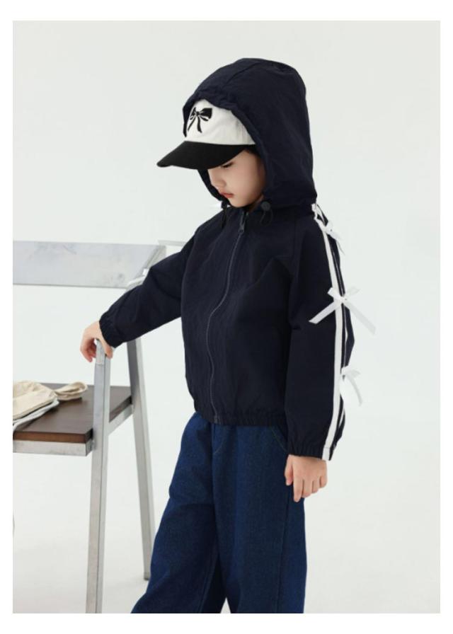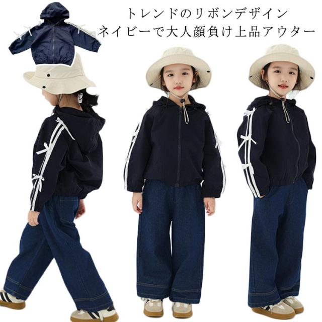 ウインドブレーカー アウター キッズ リボンジャケット 長袖 ネイビー 女の子 おしゃれ着 送料無料 冬 春 リボンジャケット 子供服 秋 ベビー服 韓国ファッション 羽織