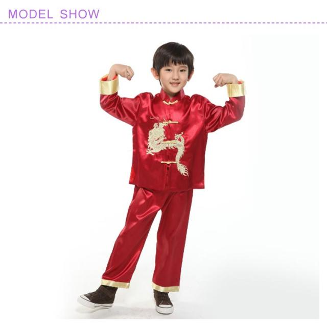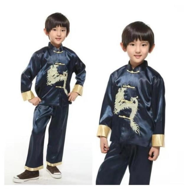 チャイナ服 コスプレ衣装 子供 上下セット 龍柄 キッズ ジュニア 中華服 唐装 学園祭 ハロウィン 男の子 ズボン 可愛い セット チャイナブラウス 漢服 イベント 長袖 龍柄 団体お揃い ステージ衣装 合唱 演奏 中国風 舞台衣装