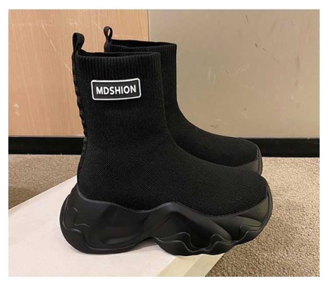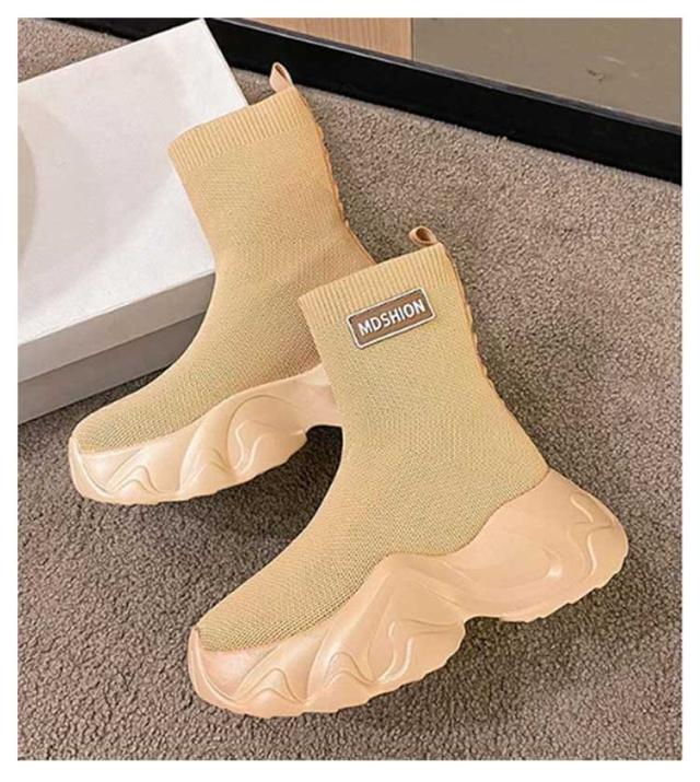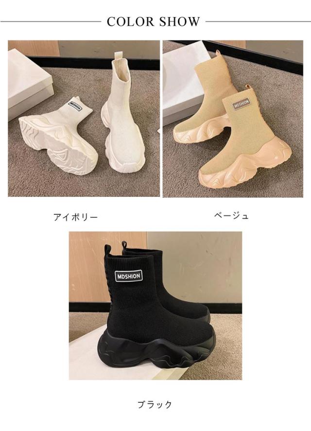 レディース シューズ ソックススニーカー 厚底 ソックススニーカー ハイカットスニーカー 厚底ブーツ プラットフォーム 靴 厚底 ニットブーツ スニーカーブーツ ソックス 伸縮 送料無料 くつ クツ ストレッチ ショートブーツ 歩きやすい 軽量 通気 ブラック ベージュ