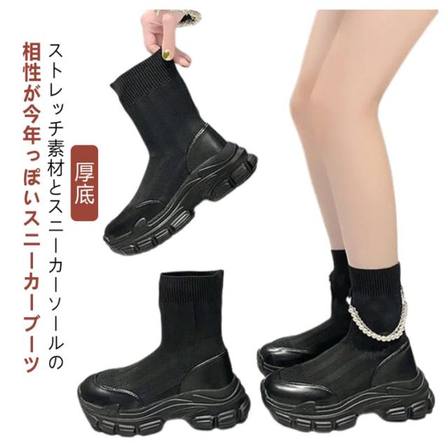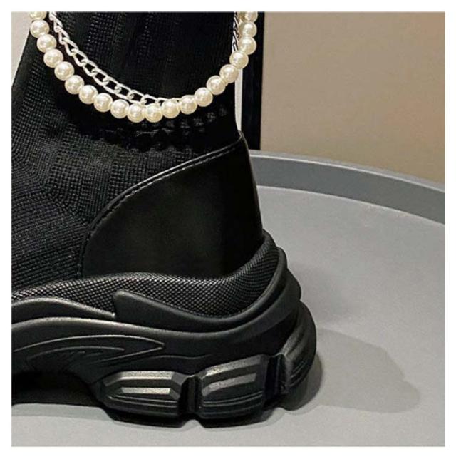 ショートブーツ 厚底スニーカー 定番 レディース ソックススニーカー ソックスブーツ スニーカーブーツ ソックススニーカー 脚長 ショート パールチェーン ブーツ スニーカー ニットアッパー 美脚 送料無料 カジュアル シューズ ハイカット ニット靴 歩きやすい 通気性