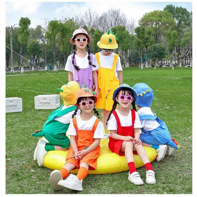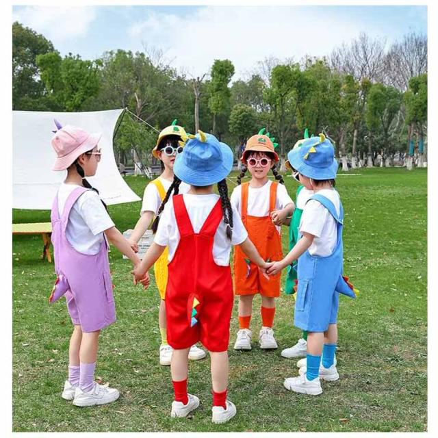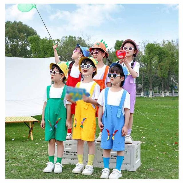 女の子 演出服 キッズ サロペット オーバーオール 男の子 子供用 ダンス衣装 春夏秋 幼稚園 おしゃれ カラフル カラーサロペット 薄手 卒業写真撮影 発表会 卒園式 ジュニア チーム揃い かわいい恐竜テール! 応援団 HIPHOP パンツ 韓国子供服 無地