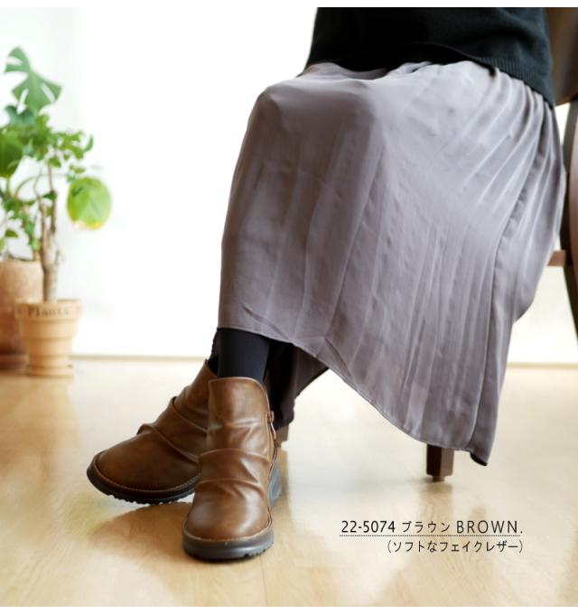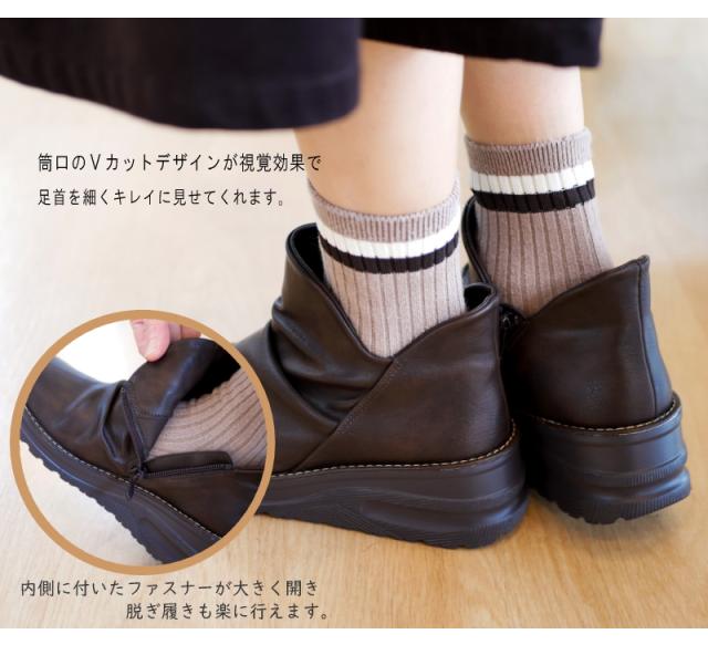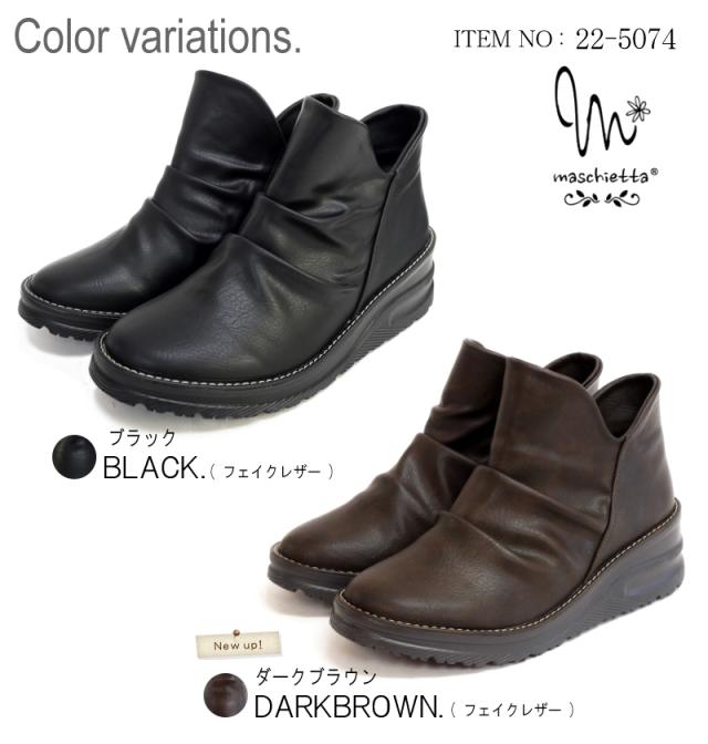 maschietta マスチェッタ ショートブーツ レディース シャーリング Vカット サイドファスナー ウエッジソール 軽い 柔らかい 滑りくい 抗菌防臭 血行促進 帯電軽減 3e 屈曲