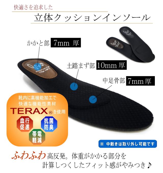 中敷きは高反発のふわふわの立体クッションで足裏の衝撃を和らげてくれます。