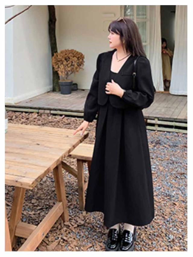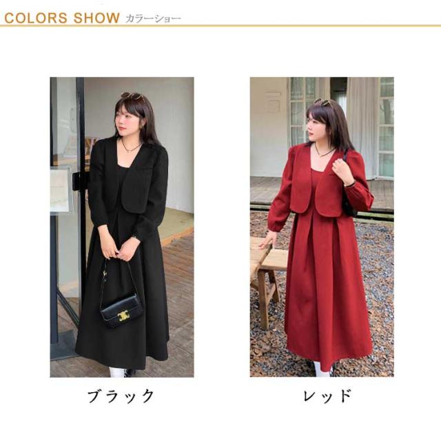 ぽっちゃりさん ワンピース ワンピーススーツ 黒 ボレロ 入学式 体型カバー 大きいサイズ 40代 セットアップ 長袖 卒園式 ぽっちゃりさん ママスーツ フォーマル フレアワンピース 30代 秋服 春秋 ショート丈