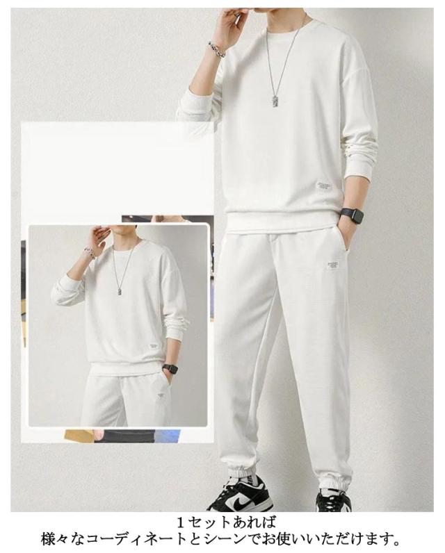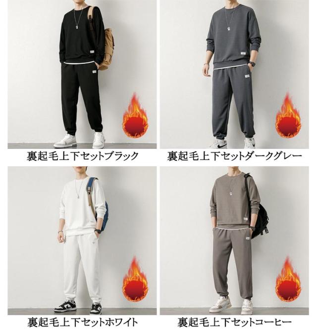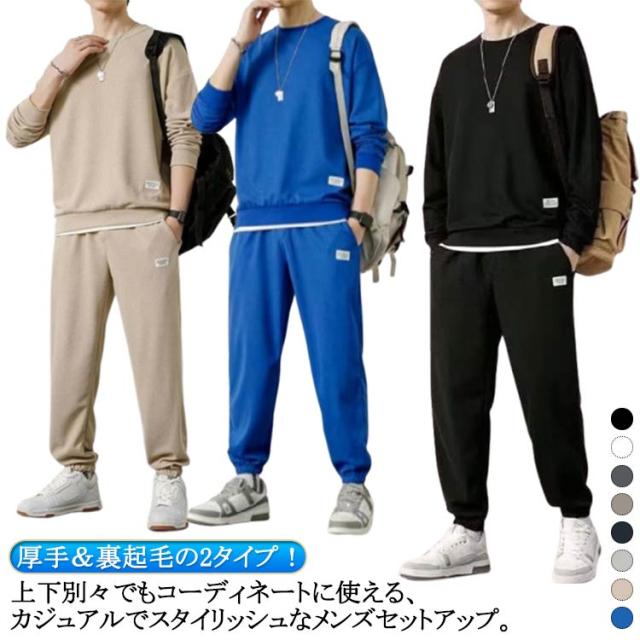 上下セット トップス スウェット ジャージ セットアップ 裏起毛 スポーツウェア 春秋 春 ロングパンツ トレーナー 無地 長袖 スエット 重ね着風 セットアップ 秋冬 メンズ 冬 厚手 クルーネック 春物 秋服 運動着 部屋着 スポーツウェア ジョガーパンツ 大きいサイズ