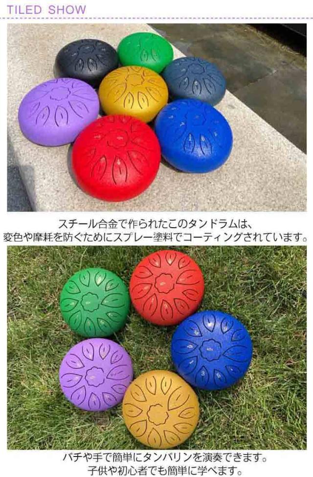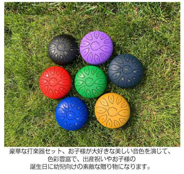 | 【セット内容】スタンド、ドラムマレット、フィンガーピック、楽譜集、トーンステッカー、収納バッグ。 スチール合金で作られたこのタンドラムは、変色や摩耗を防ぐためにスプレー塗料でコーティングされています。 スチールドラムはCメジャーの11音色のより広い範囲を持ち、クリーンで空気のようなブッダのような音を出します。 瞑想、ヨガ、初期の音楽教育などに広く使用されています。 バチや手で簡単にタンバリンを演奏できます。子供や初心者でも簡単に学べます。 打楽器であるため、ドラムのサイズは演奏体験にとって非常に重要です。6インチのドラムは、初心者からも演奏家からも評価が高く、体験感は最高です。 持ち運びに便利な収納バック付き。どこにでも楽に持ち運びできます。 豪華な打楽器セット、お子様が大好きな美しい音色を演じて、色彩豊富で、出産祝いやお子様の誕生日に幼児向けの素敵な贈り物になります。 | |