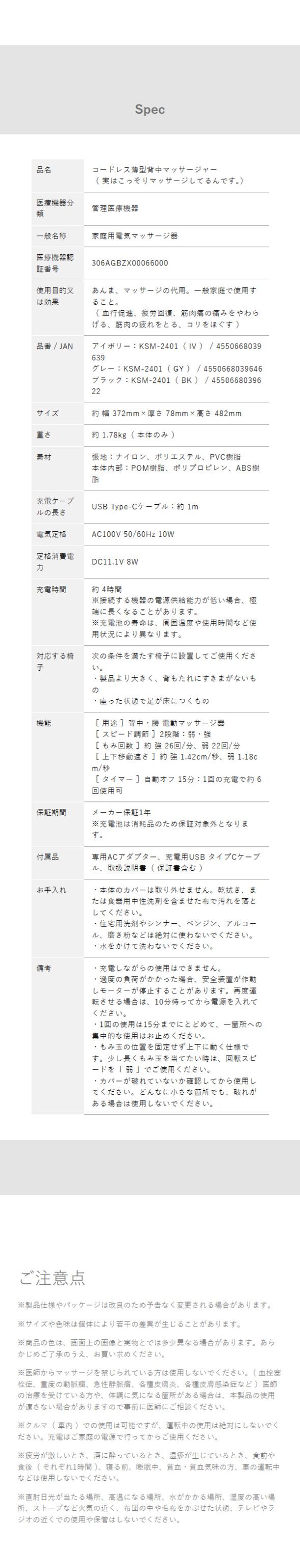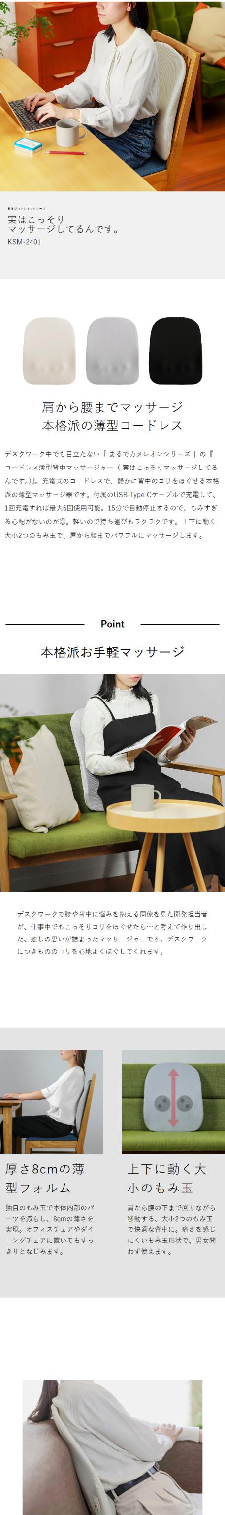 [ コードレス薄型背中マッサージャー 実はこっそりマッサージしてるんです。 KSM-2401 ]