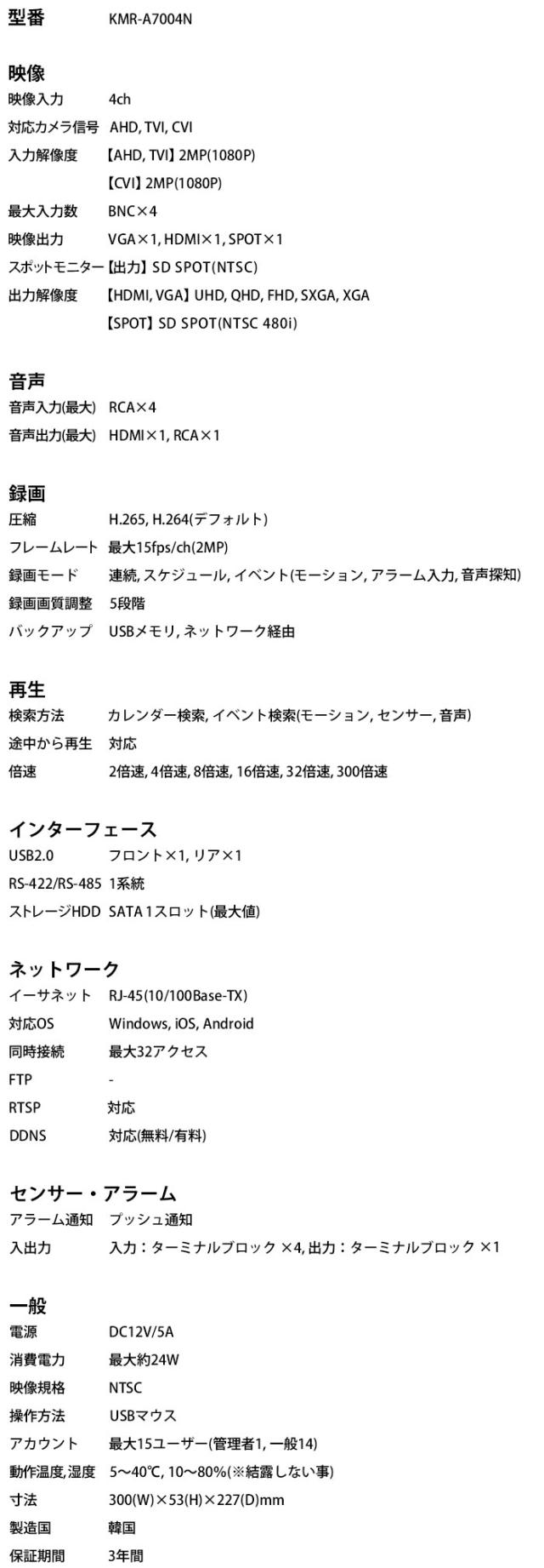 ■ KMR-A7004N(2TB) 200万画素録画2TB搭載録画機