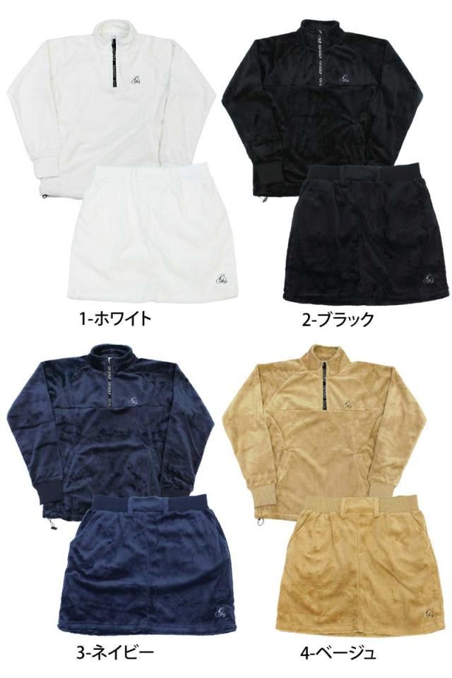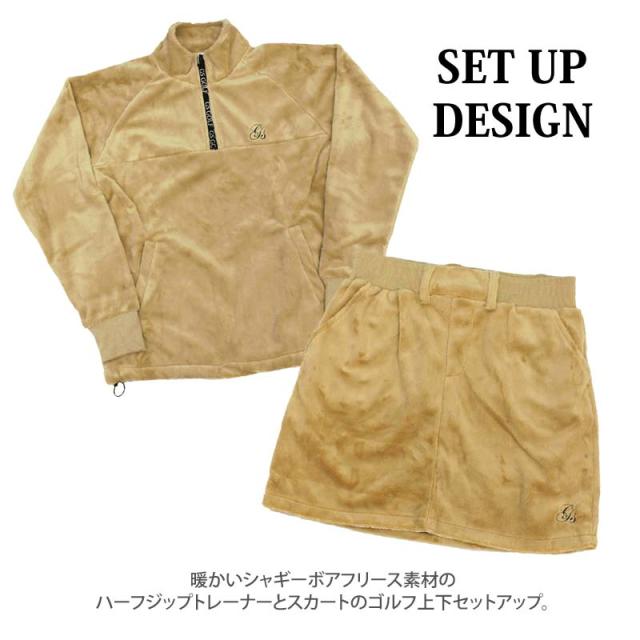 送料無料 新作 ゴルフウェア レディース 上下セットアップ gs GOLF 防寒 シャギーフリース トレーナー ニットセーター スカート ロゴ刺繍 おしゃれ かわいい 韓国系 秋冬 ブランド