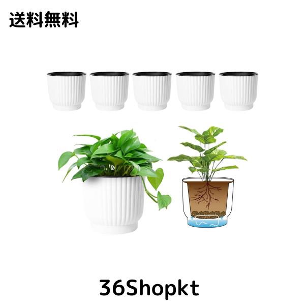 ◆商品名:T4U 15CM 給水プランター プラスチック 植木鉢 現代風 観葉植物鉢 ハーブ鉢 花鉢 ホワイト 6点セットインテイア 室内 給水ひも付き