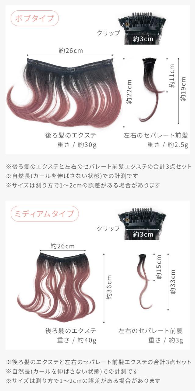 クリップ各1つ(左右のセパレート前髪エクステ)