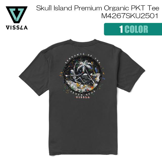 25 VISSLA ヴィスラ Tシャツ 半袖 トップス オーガニックコットン100% モダンフィット ポケットクルー ガーメントウォッシュ加工 サーフィン アウトドア レジャー メンズ ビスラ 2025年春夏 Skull Island Premium Organic PKT Tee 品番 M4267SKU2501 日本正規品