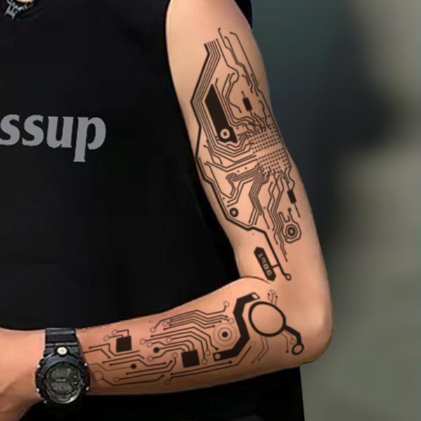 このユニークなタトゥーシールは、洗練された回路パターンを取り入れたデザインで、あなたのスタイルに一層の個性を加えます。