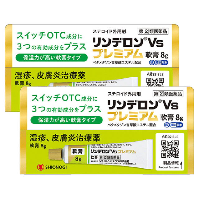 リンデロンVsプレミアム軟膏は、ステロイド成分に、皮膚修復成分と殺菌成分を配合しました。