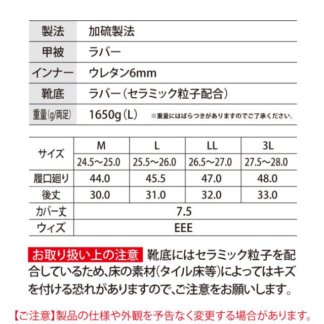 ◇セラミック粒子配合靴底・ウレタン6mm・先芯なし・防寒裏布・ウィズEEE・重量1650g(L/両足)