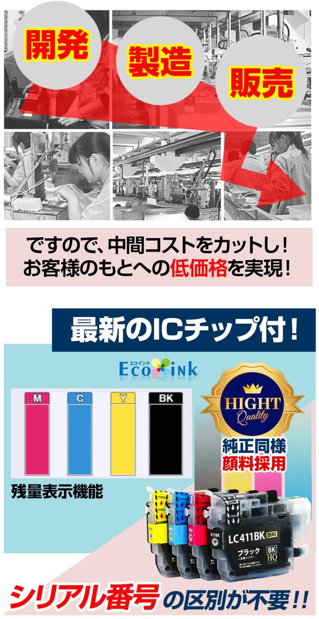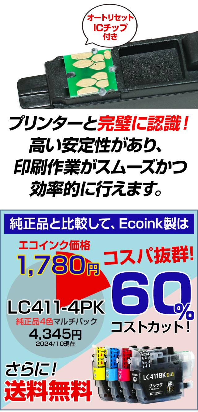 LC411-4PK 4色セット【純正同等顔料ブラック】ブラザー brother 顔料ブラック 互換インクカートリッジ 大容量 対応プリンター:DCP-J928N-W/B DCP-J926N-W/B DCP-J915N DCP-J914N DCP-J528N DCP-J526N DCP-J1800N MFC-J939DN/DWN MFC-J905N MFC-J904N MFC-J739DN/DWN