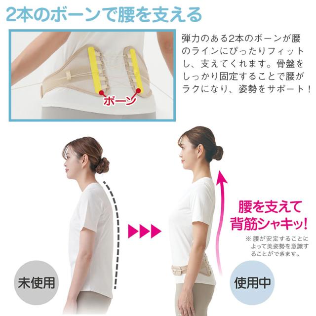 背筋を伸ばし姿勢を整える構造で、2本のボーンが腰にフィットして固定力を発揮。
