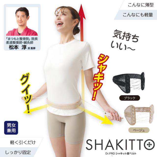 Dr.PRO シャキット腰ベルトは、骨盤と腰をしっかりサポートする通気性抜群の薄型軽量ベルトです。