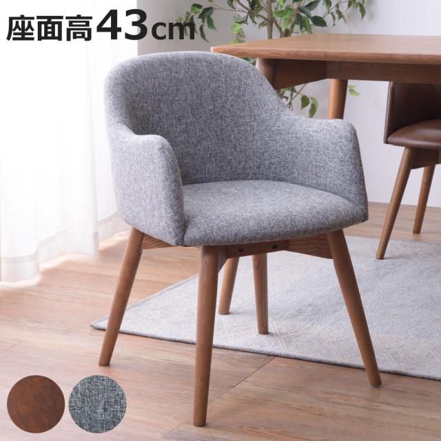 ダイニングチェア 座面高43cm 肘掛け付き カラメリ ( チェア ダイニング イス 椅子 食卓椅子 肘置き アームレスト 完成品 木製 天然木 いす 食卓 リビング リビングチェア ファブリック ソフトレザー デスクチェア )