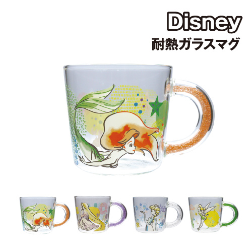 送料無料 ディズニープリンセス 耐熱ガラスマグ ビーズハンドル WDK-2820-3 / アリエル ラプンツェル エルサ ティンカーベル