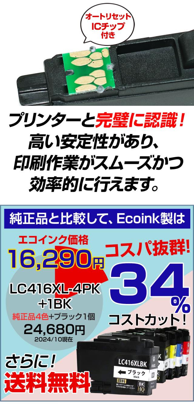 LC416XL-4PK+1BK 【全色顔料】 ブラザー用 LC416XL 大容量 互換インクカートリッジ lc416xl 互換インク LC416XL-BK LC416XL-C LC416XL-M LC416XL-Y 対応プリンター: DCP-J4143N / MFC-J4443N / MFC-J4543N / DCP-J4140N / MFC-J4440N / MFC-J4540N / MFC-J4940DN