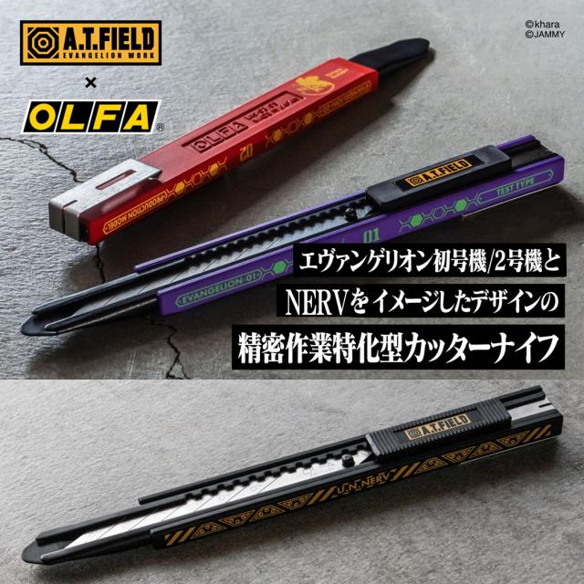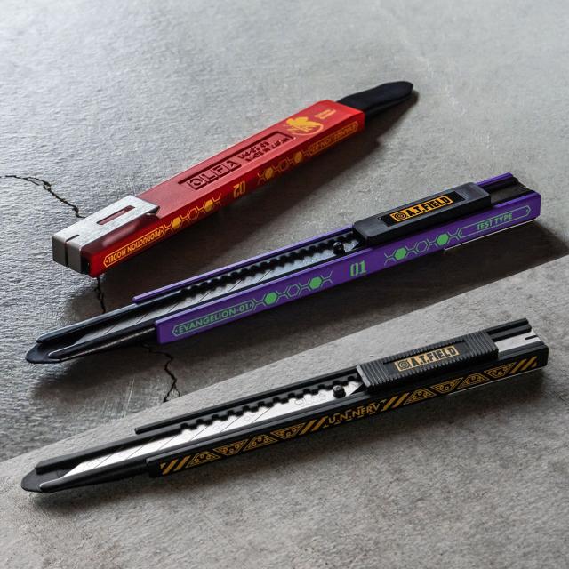 エヴァンゲリオンのワークブランド「A.T.FIELD EVANGELION WORK」と、カッターの国内トップメーカーであるオルファがコラボレーションした、カッターナイフ