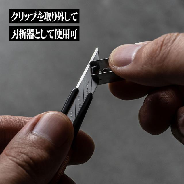 ワンタッチで刃を出し入れし、しっかりとロックできるオートロック機能付き。またクリップを本体から外せば刃折器として使用可能。さらに刃を反転して装着することで右利きと左利きどちらでも使用することができます。