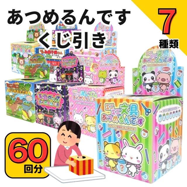 あつめるんです くじ引き くじ引きセット ミニミニ文具あつめるんです 60回分 消しゴム当て 当てくじ 景品 こども祭り 縁日 夏祭り イベント おもちゃ くじびき あてくじ 子供会 幼稚園 保育園 小学生 男の子 女の子 文房具セット 学園祭 縁日景品