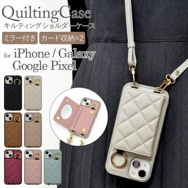 スマホケース ショルダー スマホショルダー iphone16 ケース キルティング カード収納 ミラー付き iphone15 pro plus promax iphone14 16pro 15plus 14promax iphoneケース ストラップ TPU アイフォン カードポケット リング付き 落下防止 手ぶら キルティング キルト 韓国