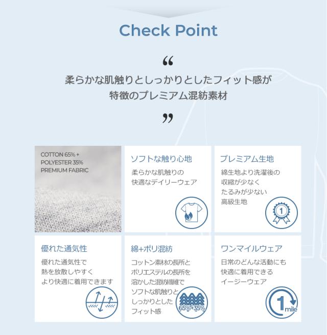 ソフトな肌触りが特徴で、長時間の着用でも心地よさが続きます。