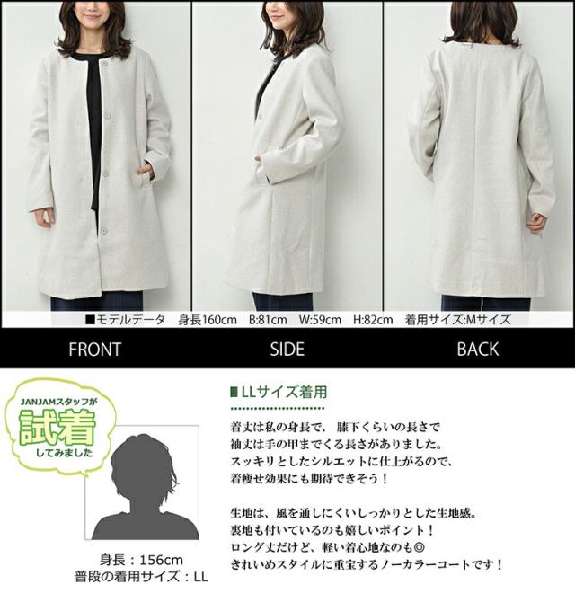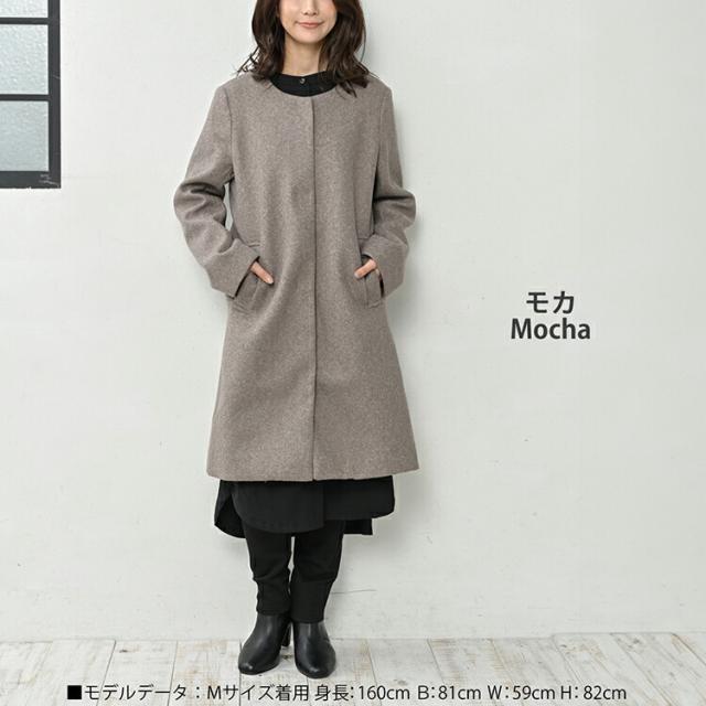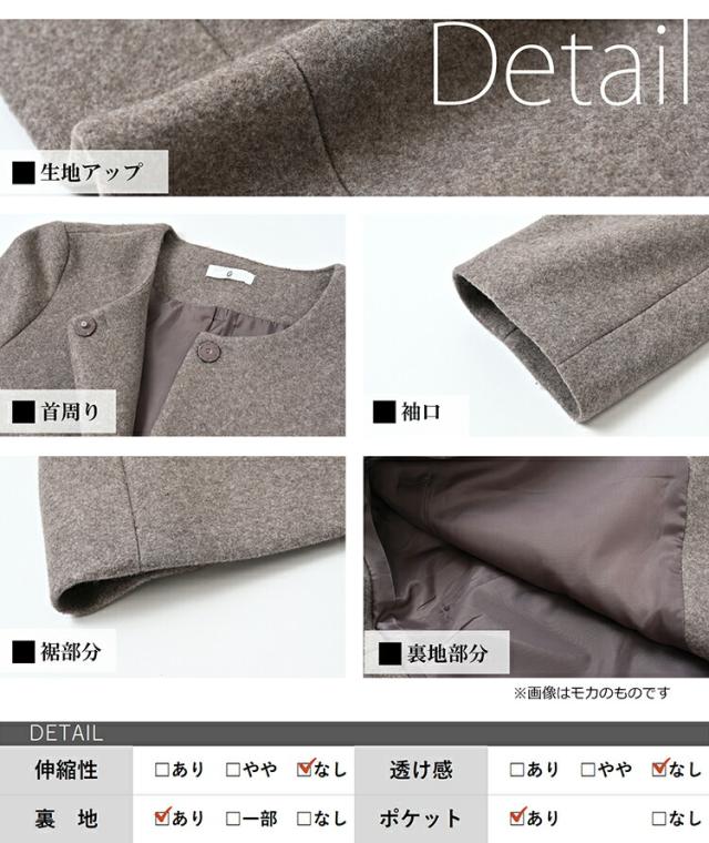 シックなデザインが上品な印象の ノーカラーコート。 肌色によく馴染む落ち着いた色味が魅力的。 オン・オフ着回せるきれいめデザインが オトナの魅力を引き立てるアウターです。 |