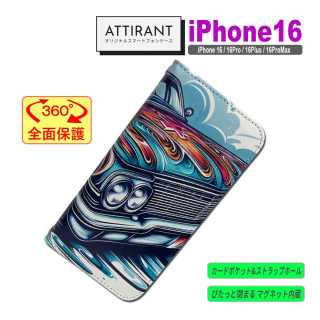 iPhone 16 ケース 手帳型 カバー 16 16 Pro Plus ProMax 16e ローライダー アメ車 1 かわいい オシャレ アイフォンケース