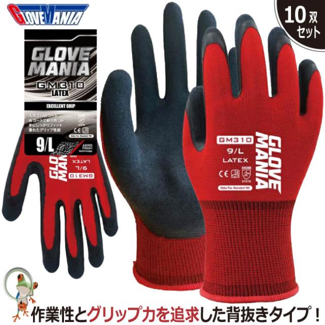 作業用 手袋 作業用手袋 GLOVE MANIA ラテックス GM310【10双セット】川西工業 レッド 作業手袋 スベリ止め手袋 ゴム手袋 背抜き手袋 通気性手袋