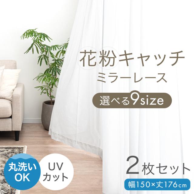 花粉キャッチ! ミラーレースカーテン 2枚組 幅150 丈176 アジャスター フック 洗える 見えにくい ミラーレース ミラー レースカーテン カーテン 2枚セット UVカット UV 花粉症対策 花粉 ハウスダスト かわいい