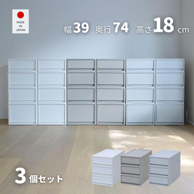 3個組 S 中が透けない 収納ケース 引き出し 奥行き74 収納ボックス 幅39 奥行74 高さ18 cm 衣装ケース 押入れ収納 押入れ クローゼット収納 クローゼット WIC ポリプロピレン プラスチック 日本製 【送料無料】
